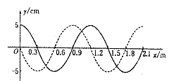 (2)(9分) 如图所示,实线和虚线分别是沿x轴传播的一列简谐横波在t=0和t=0.06s时刻的波形图。已知在t=0时刻,x=1.5m处的质点向y轴正方向运动。