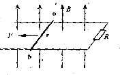 18.(09年福建卷)如图所示,固定位置在同一水平面内的两根平行长直金属导轨的间距为d,其右端接有阻值为R的电阻,整个装置处在竖直向上磁感应强度大小为B的匀强磁场中。一质量为m(质量分布均匀)的导体杆ab垂直于导轨放置,且与两导轨保持良好接触,杆与导轨之间的动摩擦因数为u。现杆在水平向左、垂直于杆的恒力F作用下从静止开始沿导轨运动距离L时,速度恰好达到最大(运动过程中杆始终与导轨保持垂直)。设杆接入电路的电阻为r,导轨电阻不计,重力加速度大小为g。则此过程