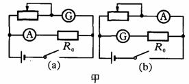 (1)某同学发现上述器材中虽然没有电压表,但给出了两个电流表,于是他设计了如图所示中甲的(a)、(b)两个参考实验电路,其中合理的是 图所示的电路;在该电路中,为了操作方便且能准确地进行测量,滑动变阻器应选 (填写器材前的字母代号).
