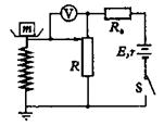 [例10]图甲是某研究性学习小组自制的电子秤原理图,利用电压表的示数来指示物体的质量。托盘与电阻可忽略的弹簧相连,托盘与弹簧的质量均不计。滑动变阻器的滑动端与弹簧上端连接,当盘中没有放物体时,电压表示数为零。设变阻器总电阻为R,总长度为L,电源电动势为E,内阻为r,限流电阻阻值为R0,弹簧劲度系数为k,若不计一切摩擦和其他阻力。