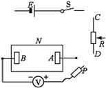 直流电压表V(量程为6V,内阻很大,其负接线柱与B极相连,正接线柱与探针P相连);