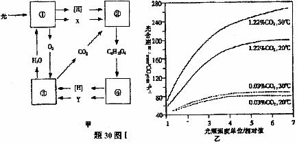 Ⅰ.(12分)题30图Ⅰ甲为绿色植物叶肉细胞内某些代谢过程中物质变化的示意图,其中①②③④分别表示不同的代谢过程.乙表示不同环境因素对植物光合速率的影响.请据图分析回答: