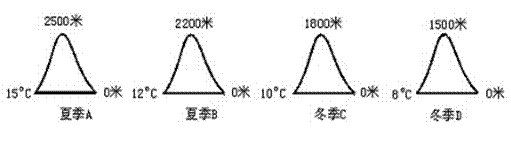 29.按气温垂直分布规律,下图中有永久性冰雪的山峰是( )