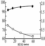 KH2PO4(aq)+HCl(aq),当反应时间不同时,产品产率和产品中Cl‑含量变化情况如图所示。KDP晶体的一级品标准:Cl-质量分数低于0.2%。