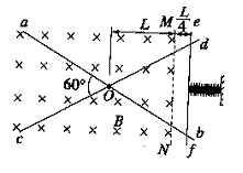 平分线重合。虚线MN是磁感应强度大小为B、方向竖直向下的匀强磁场的边界线,距O点距离为L。