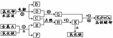 ②上图中用G、K、D生成K2FeO4反应中氧化剂和还原剂的物