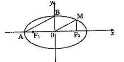 如图,F1、F2分别为椭圆的左右焦点,M为椭圆上一点,轴,且OM与椭圆长轴端点A和短轴端点B的连线AB平行。
