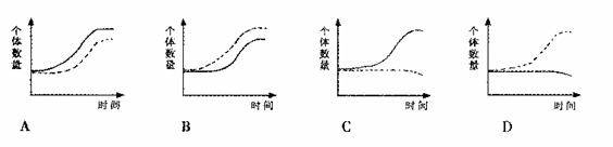 养,结果是(虚线和实线分别表示大肠杆菌和衣藻的生长曲线)           (   )