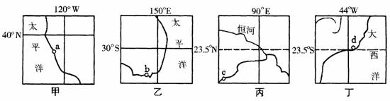下图为世界四个国家局部地区简图,读图并结合所学地理知识完成7-9题。![]()