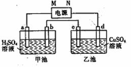 如图所示电极a、b分别为Cu电极和Pt电极,电极c、d均为石墨电极,通电开始后d电极质量增加。回答下列问题: