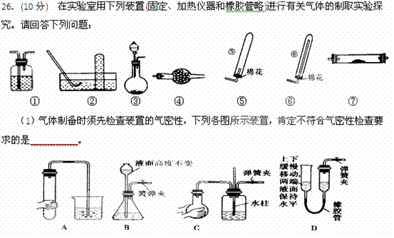 (3)将氨气通过灼热的氧化铜粉末,得到氮气和铜。要制取并收集纯净的氮气(可含有少量的水),应使用上述仪器中的(填装置序号,并按气流方向从左向右列出): ③→____________________________________。此时①中应盛放 ,