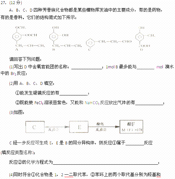 含有一COO一结构基团要求的D的同分异构体有4种。