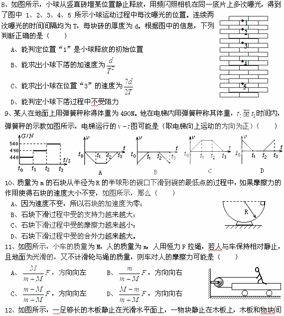 1、在下列运动状态下,物体处于平衡状态的有( )