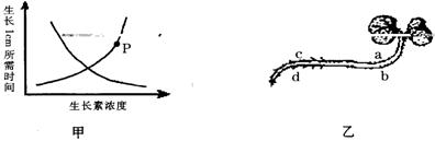 48.将植物横放,测量根和茎生长素浓度与其生长状况的关系如甲图所示,则曲线上P点最可能对应于乙图中的位置是
