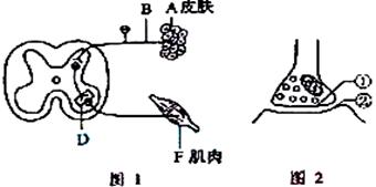 图1是当A接受一定强度刺激后引起F收缩过程示意图。图2为图1中D结构的放大示意图,