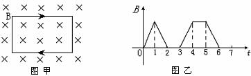 [例2]一矩形线圈位于一随时间t变化的匀强磁场内,磁场方向垂直线圈所在的平面(纸面)向里,如图甲所示。磁感应强度B随t的变化规律如图乙所示。以I表示线圈中的感应电流,以图甲中线圈上箭头所示方向的电流为正,则以下的I-t图中正确的是( )