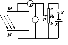 ,在MN间加垂直于纸面的匀强磁场,逐渐增大磁感强度,也能使电流为零,当磁感强度为B时,电流恰为零。试求光电子的比荷e/m=