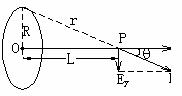 [例9]均匀带电圆环所带电荷量为Q,半径为R,圆心为O,P为垂直于圆环平面的对称轴上的一点,且OP=L,试求P点的场强。