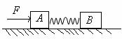 1.如图所示质量相同的木块A、B用轻弹簧相连,静止在光滑水平面上。弹簧处于自然状态。现用水平力F向右推A。则从开始推A到弹簧第一次被压缩到最短的过程中,下列说法中正确的是( )