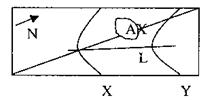 读北半球某陆地局部图,图中X、Y为等高线(等高距为100米),L为河流,对角线为经线。据此回答3-4题。