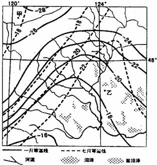 23.下图为我国某区域等温线图,表3为乙地区气候资料图,完成下列要求。