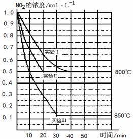 在三种不同条件下进行,其中实验Ⅰ、Ⅱ都在800℃,实验Ⅲ在850℃,NO、O2的起始浓度都为0,NO2的浓度(mol·L-1)随时间(min)的变化如图所示。请回答下列问题: