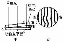 [例7]图(甲)所示是用干涉法检查某块厚玻璃的上表面是否平整的装置,检查中所观察到的干涉条纹如图乙所示,则 ( )