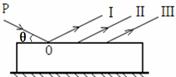 3.如右图所示,一束由两种色光混合而成的很细的复色光沿PO方向射到上、下表面平行的厚玻璃平面镜的上表面,得到三束反射光束Ⅰ、Ⅱ、Ⅲ,则:( )