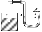 如图所示,U形管A、B内装有一部分水银,通过橡胶软管与玻璃管C相连,C管竖直插入水银槽中,若A、B、C三管内径相同,U形管两侧液面高度差为h,中间封有一段空气,则( )