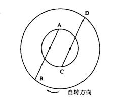 解析:首先根据自转方向,确定极点是南极点还是北极点,在该题中由于地球自转的方向是顺时针,因此极点为南极点;其次确定南北方位的变化,根据离极点之间的距离的变化,在该题中,AB首先是离南极点越来越近,后越来越远,因此先向南,后向北。再次确定东西方位的变化,根据和地球自转的方向来确定,从A到B与地球自转的方向相反,因此A到B是向西运动,综合起来由A到B是先向西南,后向西北,同样的道理C到D也是先向西南后向西北。