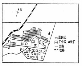 解析:解答本题时首先要明确要想减轻工业区对于城区的污染,工业区必须布局在城市居民区盛行风向的下风向,有些考生很容易从图中得出该地区的盛行风向为南风,这是错误的,因为忽略了图中的一个重要信息就是指向标,再把指向标移到该地区的实际风向上,得出该地区的盛行风向应该为东南风。