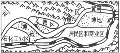 解析:解答本题时首先要明确这样几个问题:石化工业对环境造成的污染;该城市的名称及其盛行风向;尤其要注意图像的左侧的指向标,图中的每个信息都是有用信息,如河谷地区位于两座山脉之间,导致工厂废气不易扩散;石化工业区在河流的上游,污染水源;还要善于挖掘隐含条件,在该题中通过图中信息可以判定该城市为兰州,兰州的盛行风向为西北风,在结合指向标可以看出石化工业区位于居民区的上风向,对于城市的污染非常严重。