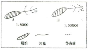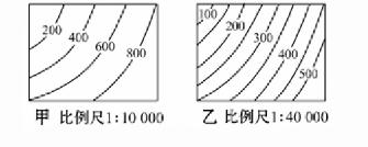且坡度和比例尺呈正比,很明显,A图的比例尺大于乙图,很明显甲图的坡度较大,因此河流的流水流速较快。