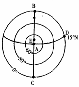 例题10:右图表示北半球夏至日太阳高度角的分布,E、F、G、H所在圆圈是晨昏圈,图中由圆心向外各圆之间的间距相等,据此回答下列问题: