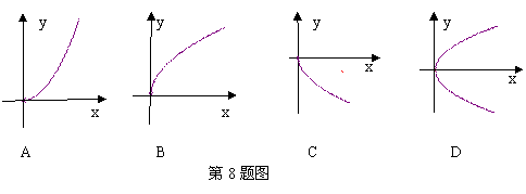 8. 我们知道,y=x2的图像是一条开口向上的抛物线,我们可以通过描点法来画出此函数的图像,你能用描点法画出x=y2的图像吗, x=y2图像可能是( ) (原创)