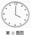 11. 如图,时钟在4点整到4点15分时,分针所旋转的角度为 度。(原创)