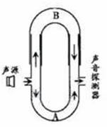 14.(09年广东物理)(2)(6分)图为声波干涉演示仪的原理图。两个U形管A和B套在一起,A管两侧各有一小孔。声波从左侧小孔传入管内,被分成两列频率 的波。当声波分别通过A、B传播到右侧小孔时,若两列波传播的路程相差半个波长,则此处声波的振幅 ;若传播的路程相差一个波长,则此处声波的振幅 。