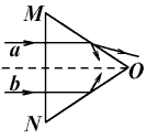 气垂直射入棱镜底面MN,在棱镜侧面OM、ON上反射和折射的情