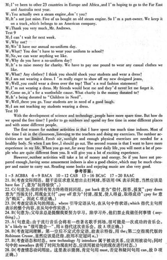 第一节 短文改错(共10小题;每小题1分,共10分)