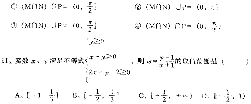 10、已知集合M ={直线的倾斜角},集合N ={两条异面直线所成的角},集合P