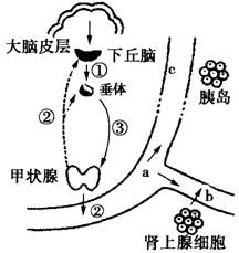① 在寒冷环境中,图中的②分泌量增加的同时____________(填字母)的分泌量也增加,二者共同促进机体的新陈代谢。请写出寒冷条件下皮肤立毛肌收缩,起鸡皮疙瘩的反射弧_________________。