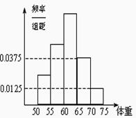 5.如图是某学校学生体重的频率分布直方图,已知图中