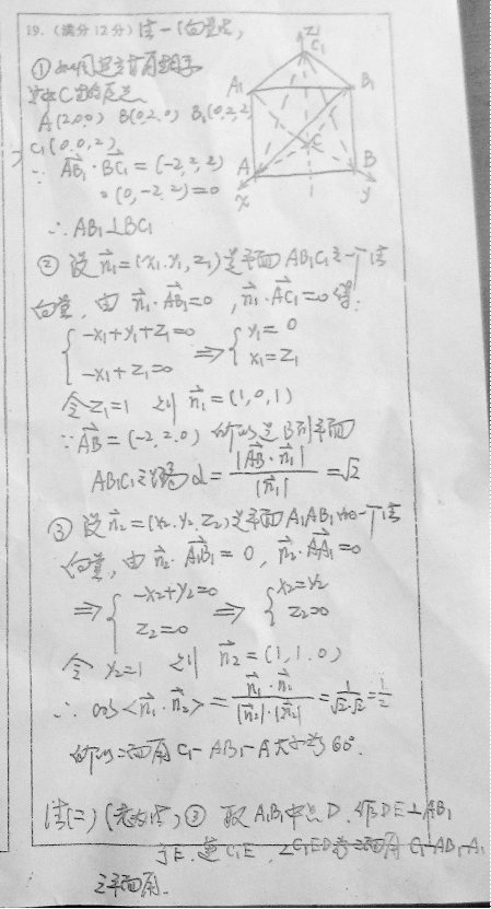 如图:在直三棱柱ABC-A1B1C1中,∠ACB=90°,AC=BC=CC1=2.