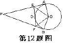 12.如图,已知:PA、PB、EF 分别切⊙O 于A、B、D,若PA=10cm,那么