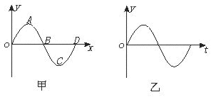 [解析]:乙图的振动图象反映出这列波传播介质中该质点此后一段时间内首先由平衡位置向上振动,而这样的质点只可能是B或D,由“带动法”可知,若波沿x轴正方向传播,向上振动的质点只有B;若波沿x轴负方向传播,向上振动的质点只有D,故本题的正确答案为B、D选项。