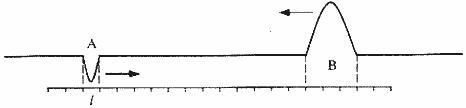 [例8]A、B两波相向而行,在某时刻的波形与位置如图所示,已知波的传播速度为