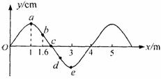 如图所示是一列简谐横波在t=0时刻的波形图. 质点c在t=3s时第1次到达波峰,此时质点e恰好在平衡位置且向下运动,则下列说法正确的是 ( )