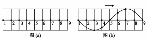 6.在均匀介质中选取平衡位置在同一直线上的9个顶点,相邻两质点的距离均为L,如图(a)所示,一列横波沿该直线向右传播,t=0时到达质点1,质点1开始向下运动,经过时间Δt第一次出现如图(b)所示的波形,则该波的 ( )