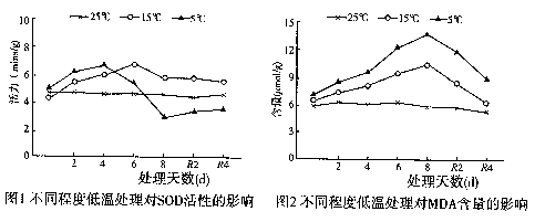 ②在培养的0、2、4、6、8天和恢复常温培养的第2(R2)天、第4(R4)天,进行各项生理指标测定。