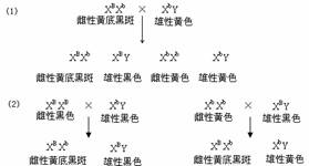 (1)黄底黑斑猫和黄色猫交配,子代性别和毛色表现如何?